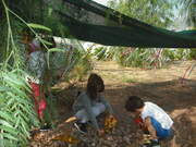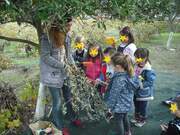 Παιχνίδι εξερεύνησης πραγματοποιήσαμε με τους μαθητές μας στην αυλή του νηπιαγωγείου μας. Σκοπός του παιχνιδιού ήταν να ανακαλύψουμε τη μικρή ελιά που βρίσκεται στο σχολείο μας. Κατά τη διάρκεια της εξερεύνησης τα παιδιά μέτρησαν τα διαφορετικά είδη δέντρων που είναι φυτεμένα στην αυλή, παρατήρησαν τις διαφορές στα φύλλα τους και ξεχώρισαν τα φυλλοβόλα από τα αειθαλή. Όταν εντόπισαν την ελιά την παρατήρησαν και την περιέγραψαν δίνοντας ιδιαίτερη σημασία στο χρώμα των φύλλων της. Η δραστηριότητα ολοκληρώθηκε με τη συλλογή φύλλων από όλα τα είδη δέντρων.