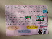 Όλοι οι μαθητές με τη βοήθεια των νηπιαγωγών δημιούργησαν τον ΟΙΚΟΚΩΔΙΚΑ, ένα σύνολο κανόνων υπεύθυνης διαχείρισης των απορριμμάτων στο σχολείο και στο σπίτι. Οι μαθητές υπαγόρευσαν τους κανόνες στις νηπιαγωγούς και στη συνέχεια τα παιδιά χωρισμένα σε ομάδες ζωγράφισαν τους κανόνες. Ο οικοκώδικας τοιχοκολλήθηκε στις αίθουσες διδασκαλίας και σε εμφανές σημείο στην είσοδο του σχολείου.