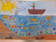 Τα παιδιά χρησιμοποιώντας ποικίλα εργαλεία και τρόπους προσπαθούν να καθαρίσουν το μολυσμένο νερό. Αρχικά με τσιμπίδες απομακρύνουν τα πλαστικά καλαμάκια, καπάκια και μπουκάλια και έπειτα με έναν μεγάλο μαγνήτη βγάζουν από το νερό τα μεταλλικά αντικείμενα.