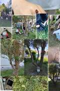 Φορούν γάντια και αναλαμβάνουν δράση καθαρισμού των χόρτων γύρω από τις ελιές.
