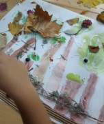 Φθινοπωρινό δάσος από τα παιδιά της πρώτης δημοτικού. φύλλα που μάζεψαν από την αυλή του σχολείου οι μικροί μαθητές και έφεραν την φύση μέσα στην τάξη.