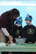 Η νηπιαγωγός μας, κ.Γιώτα Παππά, μας εξήγησε ότι όταν ένα μόριο οξυγόνου ενώνεται με δύο μόρια υδρογόνου, δημιουργείται το νερό. Έτσι λοιπόν κι εμείς, πήραμε δύο χρώματα πλαστελίνης και φτιάξαμε δύο μπάλες Υδρογόνο και μια Οξυγόνο. Τις ενώσαμε με πλαστικά καλαμάκια και δημιουργήσαμε το νερό!