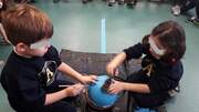 Δύο μπαλόνια και λίγη γυψόγαζα ήταν τα υλικά που χρησιμοποιήσαμε για να φτιάξουμε, με τη βοήθεια τής νηπιαγωγού μας, κ.Γιώτας Παππά, μια παρέα από νεροσταγόνες. Τις βάψαμε, τις στολίσαμε και το αποτέλεσμα ήταν εντυπωσιακό!