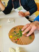 Με αφορμή την εορταστική περίοδο, οι μαθητές του σχολείου μας δημιούργησαν όμορφα χριστουγεννιάτικα στολίδια χρησιμοποιώντας απλά και ανακυκλώσιμα υλικά. Με βασικές πρώτες ύλες χαρτόνια από παλιά χαρτοκιβώτια και υφάσματα που μετατράπηκαν σε κορδέλες, τα παιδιά έφτιαξαν στολίδια για το δέντρο, γιρλάντες και διακοσμητικά που γέμισαν το σχολείο μας με γιορτινή ατμόσφαιρα. Η δημιουργική διαδικασία περιλάμβανε κοψίματα και διαμορφώσεις των χαρτονιών, ενώ με τέμπερες και απλές τεχνικές στάμπας πρόσθεσαν χρώμα και σχέδια στις κατασκευές τους.