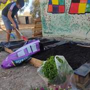 Μετατρέπουμε παλιά μπουκάλια, ξύλινες παλέτες και φθαρμένα λάστιχα αυτοκινήτων σε όμορφες γλάστρες και παρτέρια. Επιπλέον, κατασκευάσαμε παγκάκια από παλέτες, δίνοντας νέα ζωή σε ανακυκλωμένα υλικά. Οι μαθητές συμμετέχουν ενεργά στη δημιουργία ενός βιώσιμου κήπου, αναπτύσσοντας δεξιότητες επαναχρησιμοποίησης και δημιουργικότητας.