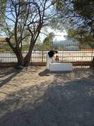 Το ένα στέγαστρο έχει τοποθετηθεί και η σκιά του είναι περιζήτητη από τα παιδιά.