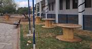 Η νέα σχολική χρονιά ξεκίνησε ευοίωνα, καθώς ευοδώθηκαν οι περσινές προσπάθειες του Περιβαλλοντικού Προγράμματός μας. Χάρη στην πρωτοβουλία της προέδρου του Συλλόγου Γονέων & Κηδεμόνων υλοποιήθηκαν οι προτάσεις μας για την προμήθεια επιπλέον κάδων απορριμμάτων και για την επαναχρησιμοποίηση στροφίων (ξύλινων καρουλιών καλωδίων) ως τραπεζιών για τη σίτιση των μαθητών.