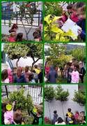 Αποφασίσαμε λοιπόν να βγούμε στην αυλή, να παρατηρήσουμε τα δένδρα της -τα φύλλα τους, τα άνθη τους, τους καρπούς τους- να μάθουμε το όνομά τους και να τα μετρήσουμε!