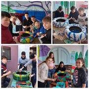 Μαθητές από όλες τις τάξεις του σχολείου μας, με την καθοδήγηση του καθηγητή του μαθήματος των καλλιτεχνικών, μετέτρεψαν παλιά λάστιχα σε γλάστρες.